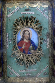 Reliquiario a forma di altare, cm 21x15, inizi XX secolo, entro cornice