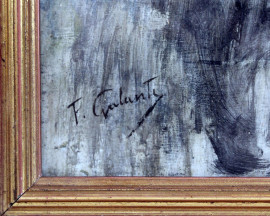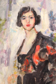 Ritratto di donna, olio su compensato, cm 30x15, firmato, entro cornice