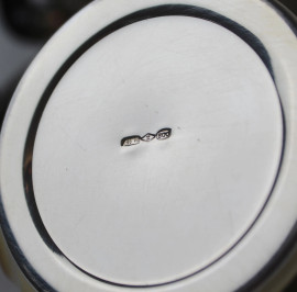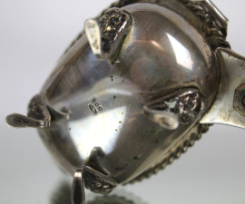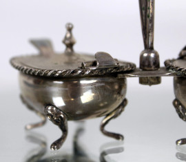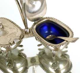 Salierina doppia in argento, vaschette in vetro blu cobalto, cm h8,5x9x11, gr 108
