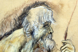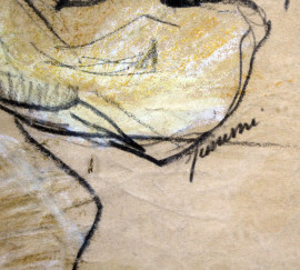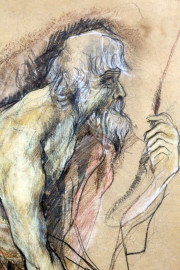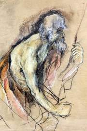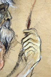 San Girolamo, carboncino e pastello su carta, cm 38,5x28, firmato, entro cornice