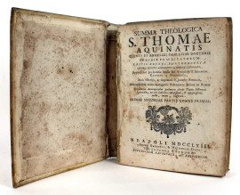San Tommaso d'Aquino, Summa Theologica, volume in pergamena, seconda parte del tomo primo, Napoli, 1763, (difetti)