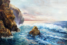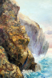 Scorcio di costa, olio su tavoletta, cm 52x71, firmato, entro cornice
