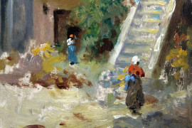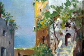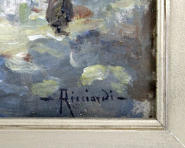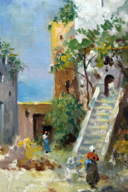 Scorcio di paese costiero, olio su tavola, cm 30x13,5, firmato, entro cornice
