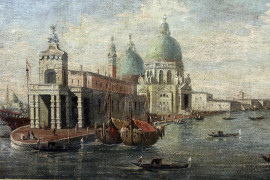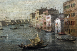 Scorcio di Venezia, olio su tela, cm 60x120, firmato, entro cornice