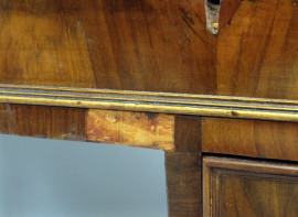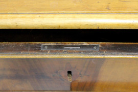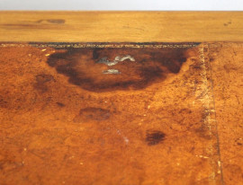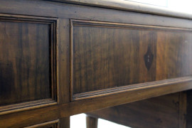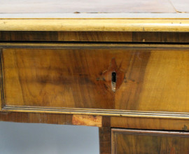 Scrittoio in noce a quattro cassetti, piano in pelle, poggiante su quattro gambe scanalate, XIX secolo, cm h 83x120x72, (difetti)