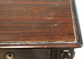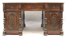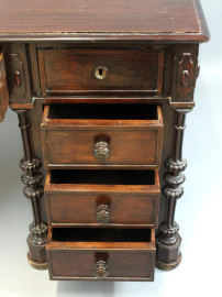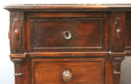 Scrivania da centro del XIX secolo in mogano, fronte a nove cassetti, cm h 80x145x76, (difetti)