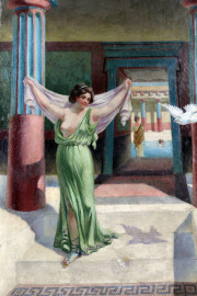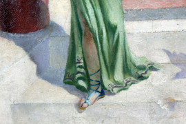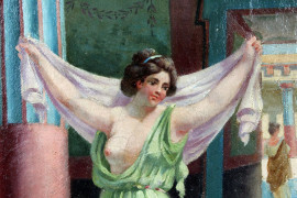 Scuola francese del XIX secolo, Scena di vita pompeiana, firmato in basso a destra, olio su tela, cm 46x33