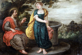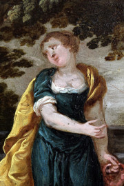 Scuola olandese del XVII secolo, Cristo e la samaritana al pozzo, olio su rame, cm 16,7x22,2