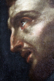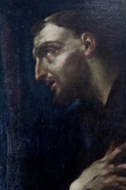 Seguace di Francesco Trevisani (Capodistria 1656 - Roma 1746), San Francesco che adora la Croce, olio su tela, cm 54x42