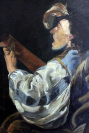 Seguace di Hendrick Ter Brugghen (1588-1629), Suonatore di liuto, olio su tela, cm 61x50, (piccolo difetto alla tela)