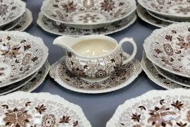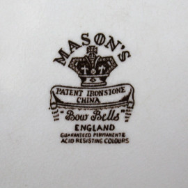 Servizio di piatti in porcellana inglese Mason's "Bow Bells" anni '40, composto da 11 piatti piani, 14 piatti fondi, 14 piattini, 1 salsiera con piattino, (servizio incompleto)