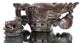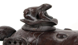 Teiera in pietra saponaria a forma di carpa, arte orientale, XX secolo, cm h 13x21x9
