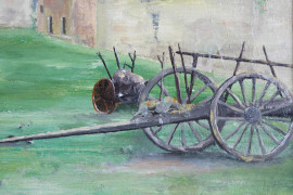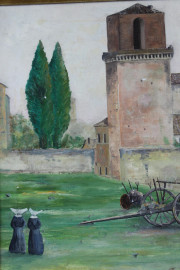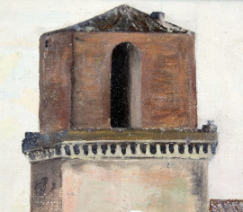 Torre sulla piazza di San Pietro in vincoli, olio su tela, cm 40x30, firmato, entro cornice