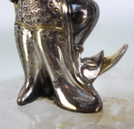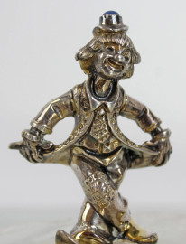 Tre sculture in argento raffiguranti Clown, basi in cristallo di Rocca, alt. max cm 7,5