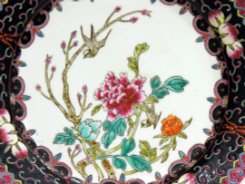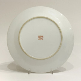 Antico piatto in porcellana cinese, tarda Dinastia Repubblica Popolare Cinese (XX sec.), finemente dipinto a mano, diametro cm 27, al retro marchio dinastico in lacca rossa