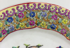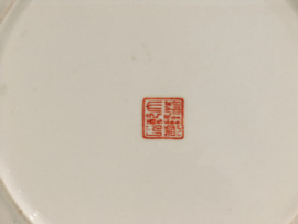 Antico piatto in porcellana cinese, tarda Dinastia Repubblica Popolare Cinese (XX sec.), finemente dipinto a mano, diametro cm 27, al retro marchio dinastico in lacca rossa