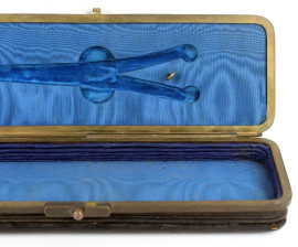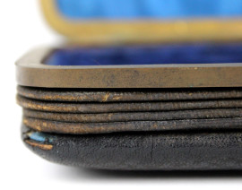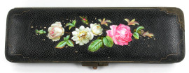 Astuccio in pelle decorato con applicazioni a motivi floreali, inizi XX secolo, cm 4x27,5x8,5, (difetti)