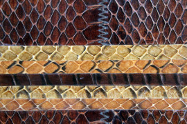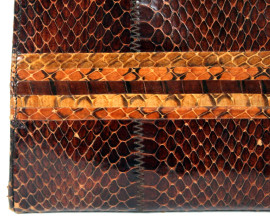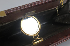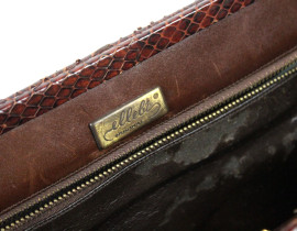 Borsa vintage in pelle di serpente con specchietto all'interno, cm 37,5x18x2, (difetti, mancante di tracolla).