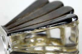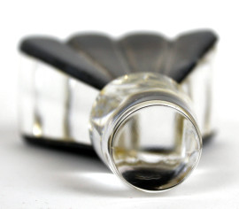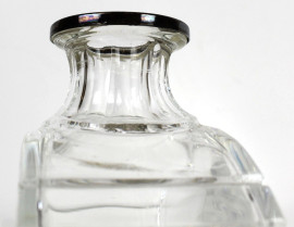Bottiglia in cristallo con bordo ed applicazioni in argento, XX secolo, cm h 21,5, (difetti)
