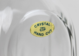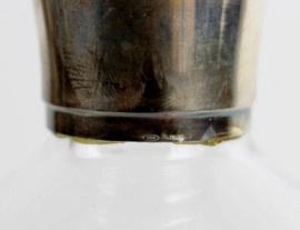 Bottiglia in cristallo controtagliato con finitura in argento, cm h 31,5