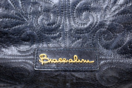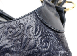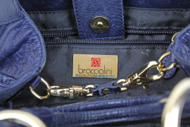 Braccialini, borsa in pelle color blu, cm 32x28x17, (segni del tempo)
