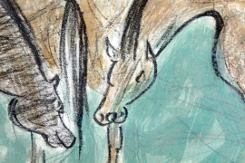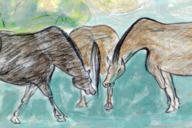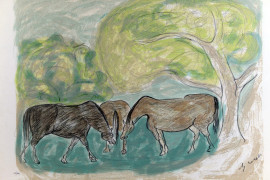 Cavalli, litografia a colori, cm 49x69, entro cornice