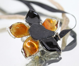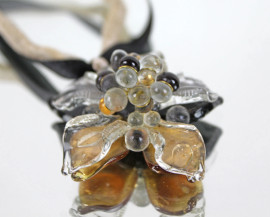 Collana girocollo con pendente in vetro a forma di fiore, chiusura in argento, (difetto)