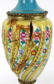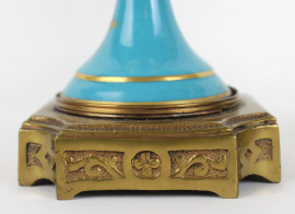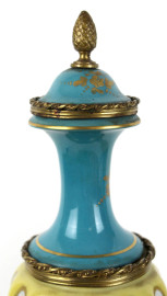 Coppia di potiches in porcellana Sevres, decori floreali, finali e basi in bronzo, cm h 36,5, (difetti, un'alzata con restauri)