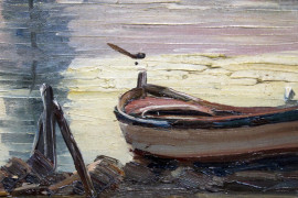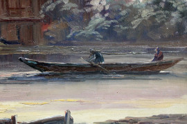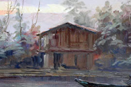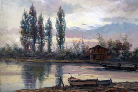Crepuscolo sul fiume, olio su tela, cm 50x70, entro cornice
