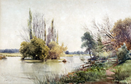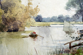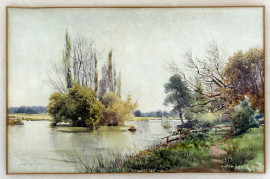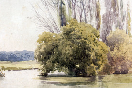 Dintorni di Shiplake, acquarello su carta, cm 30x45, firmato Carlandi, entro cornice