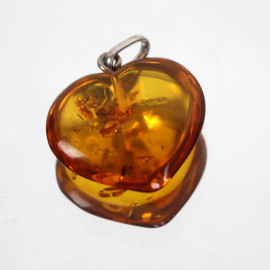 Due ciondoli in ambra a forma di cuore, misure max cm 2,5x2,5