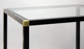 Due tavolini anni '70 in vetro e metallo laccato, misure max cm 50x50x50