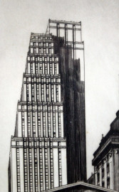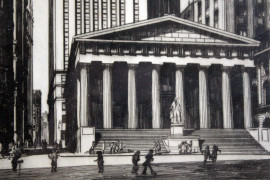 Federal Hall, multiplo su carta, cm 36,5x20, firmato, prima metà XX secolo, entro cornice, (macchie)