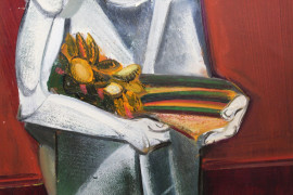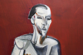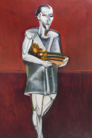 Figura, olio su carta applicata su tela, cm 50x70, datato 1973, (difetti)
