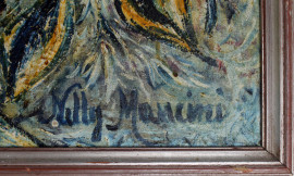 Fiori, olio su tela, cm 68x43, firmato, entro cornice