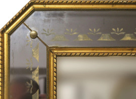 Grande specchiera di linea sagomata con cornice in legno dorato, cm 178x114, XX secolo.