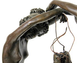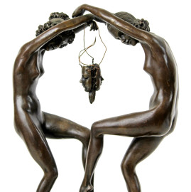 La danza delle maschere, scultura in bronzo, cm h 26,5, base in marmo, XX secolo.
