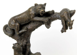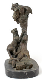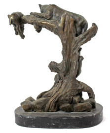 La preda, scultura in bronzo, cm h 28, base in marmo, XX secolo.