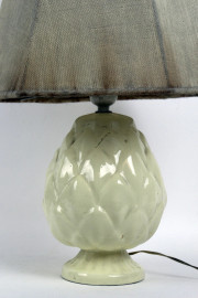 Lampada da tavolo in ceramica a forma di pigna, completa di paralume, XX secolo, alt. cm 47