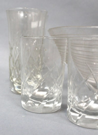 Lotto composto da 10 bicchieri ed un centrotavola in vetro, XX secolo, (difetti)