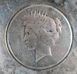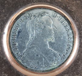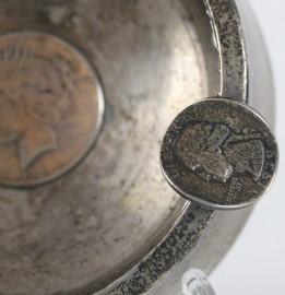 Lotto composto da una coppetta in rame ed un posacenere in argento con monete incastonate, diametro max. cm 11