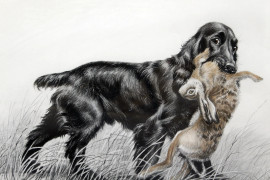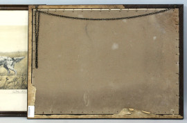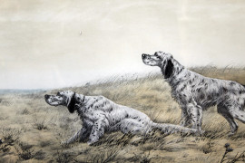 Lotto di due incisioni a colori raffiguranti Cocher et lèvres e Setters in pleine, cm 53x73, entro cornici.