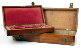 Lotto di due scatole in noce, misure max cm 10x41,5x17,5, inizi XX secolo.