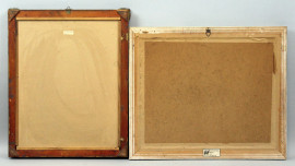Lotto di due stampe a colori da Ferdinand Georg Waldmüller e Jean-Honoré Fragonard, misure max cm 48,5x38, XX secolo, entro cornici