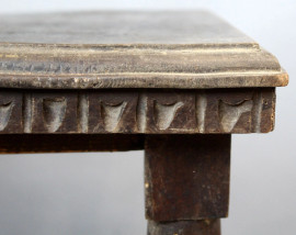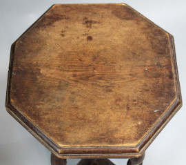Lotto di due tavolinetti in legno tinto a noce, di linea quadrata e ottagonale, gambe a rocchetto, misure max cm 65x39x38, inizi XX secolo, (difetti)