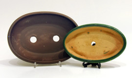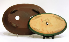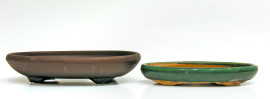 Lotto di due vasi cinesi vintage Yixing “shin-shin-to” per bonsai, larghezza cm 21 in terracotta e smalto e cm 25 in gres