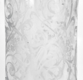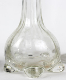 Lotto di due vasi e tre candelieri in vetro, alt. max cm 31, XX secolo.