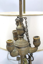 Lotto di quattro lampade fiorentine in bronzo e ottone, alt. max cm 69, (difetti).