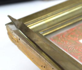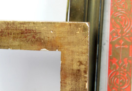 Lotto di sei cornici in legno, misure max cm 24x18, (difetti)