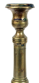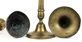 Lotto di tre candelieri in bronzo dorato, XX secolo, alt. max cm 23,5,